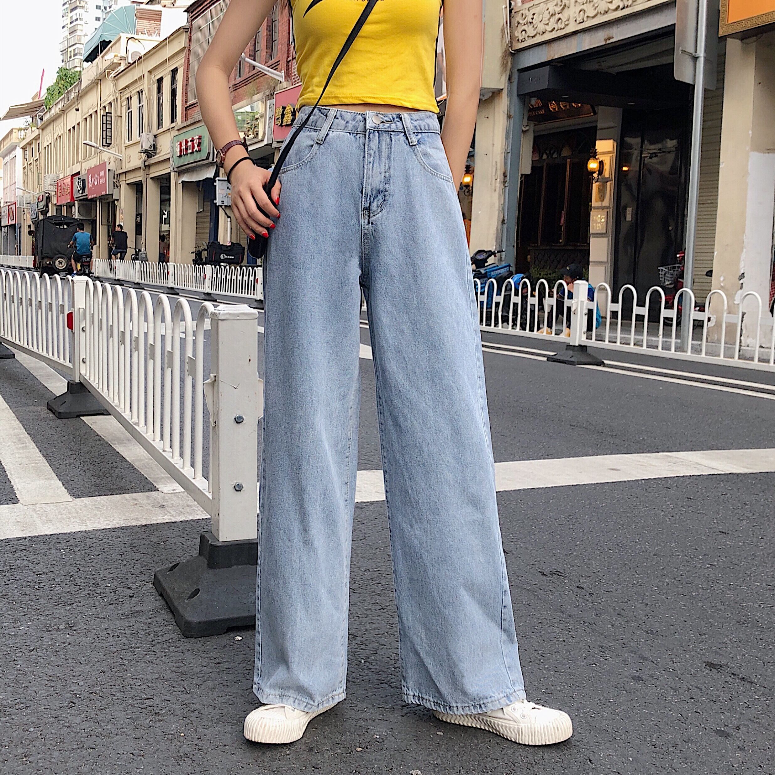 High Waist Jeans Women's Autumn 2022 New Large Size Loose Wide Leg Pants for Plump Girls Slimming Drape Mop Straight Pants