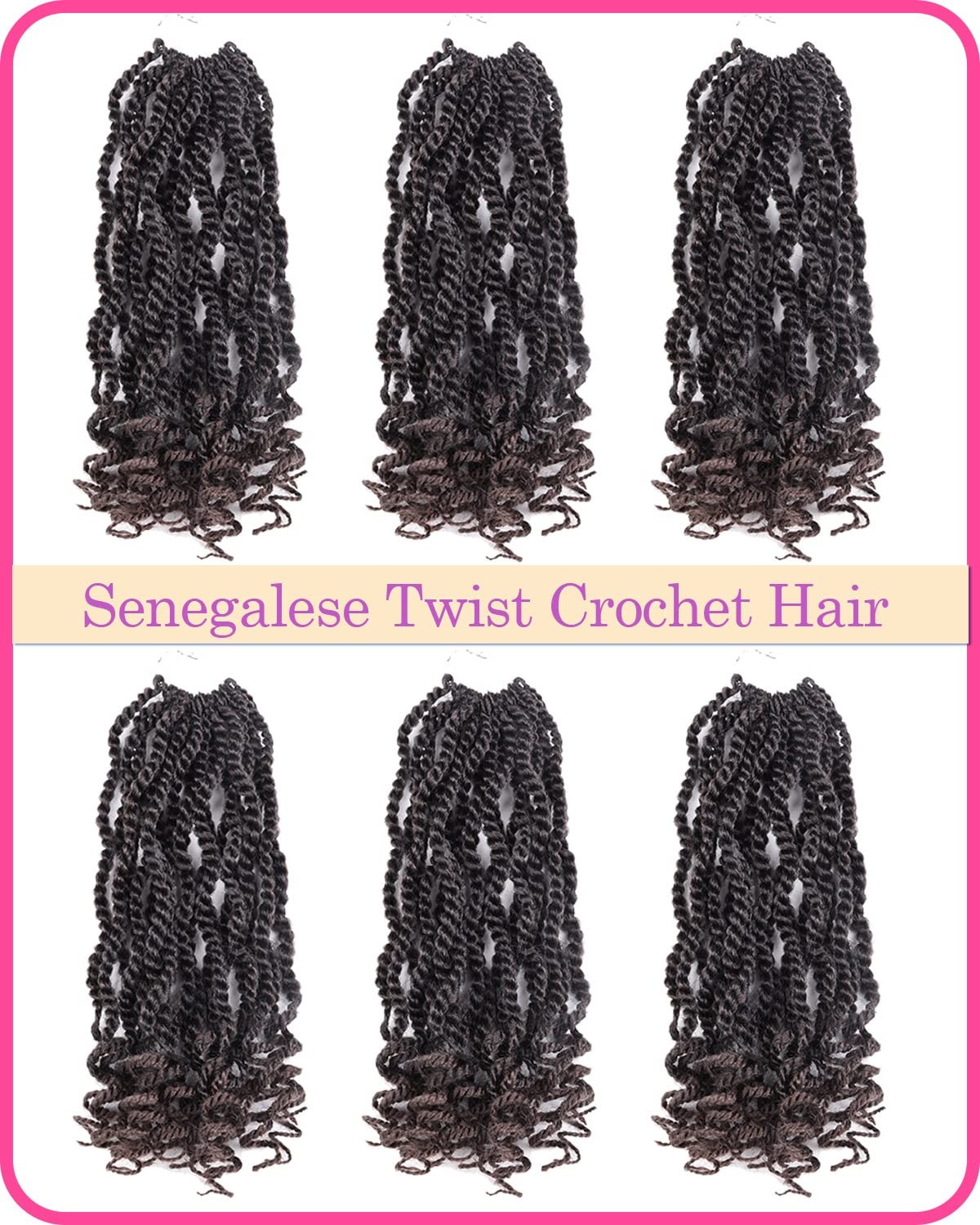 8 Inch Senegalese Twist Crochet Hair Black Women 6 Packs Havana Twist Crochet Hair with Curly Ends Short Bob Crochet Braids for Kids Synthetic Small Braiding Hair Extensions (T30#, 8 Inch)