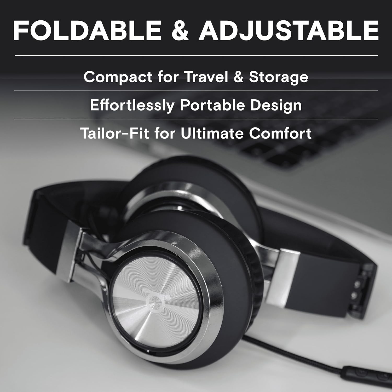 ARTIX CL750 Wired Headphones with Mic & Volume Control — Noise Isolating On-Ear Headphones for Computer and Laptop Wired, Plug in Corded Headphone Over Ear with Wire (Foldable, Aux Jack 3.5mm)