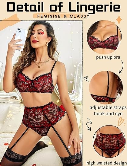 Avidlove Women Lingerie Set High Waisted Underwire Lingerie With Garter Belt Lace Babydoll