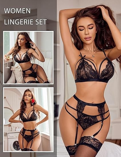Avidlove Women Lingerie Set Lace Teddy Strap Babydoll Bodysuit with Garter Belts