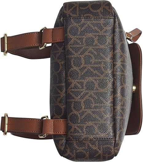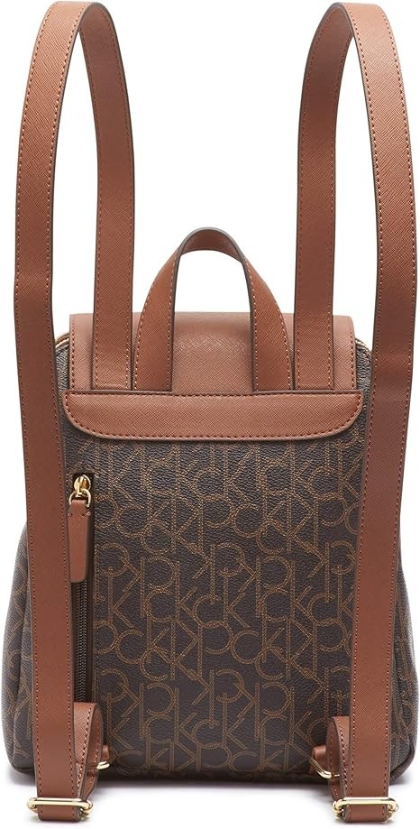 Calvin Klein Women's Elaine Signature Key Item Flap Backpack, Brown/Khaki/Luggage Saffiano, One Size