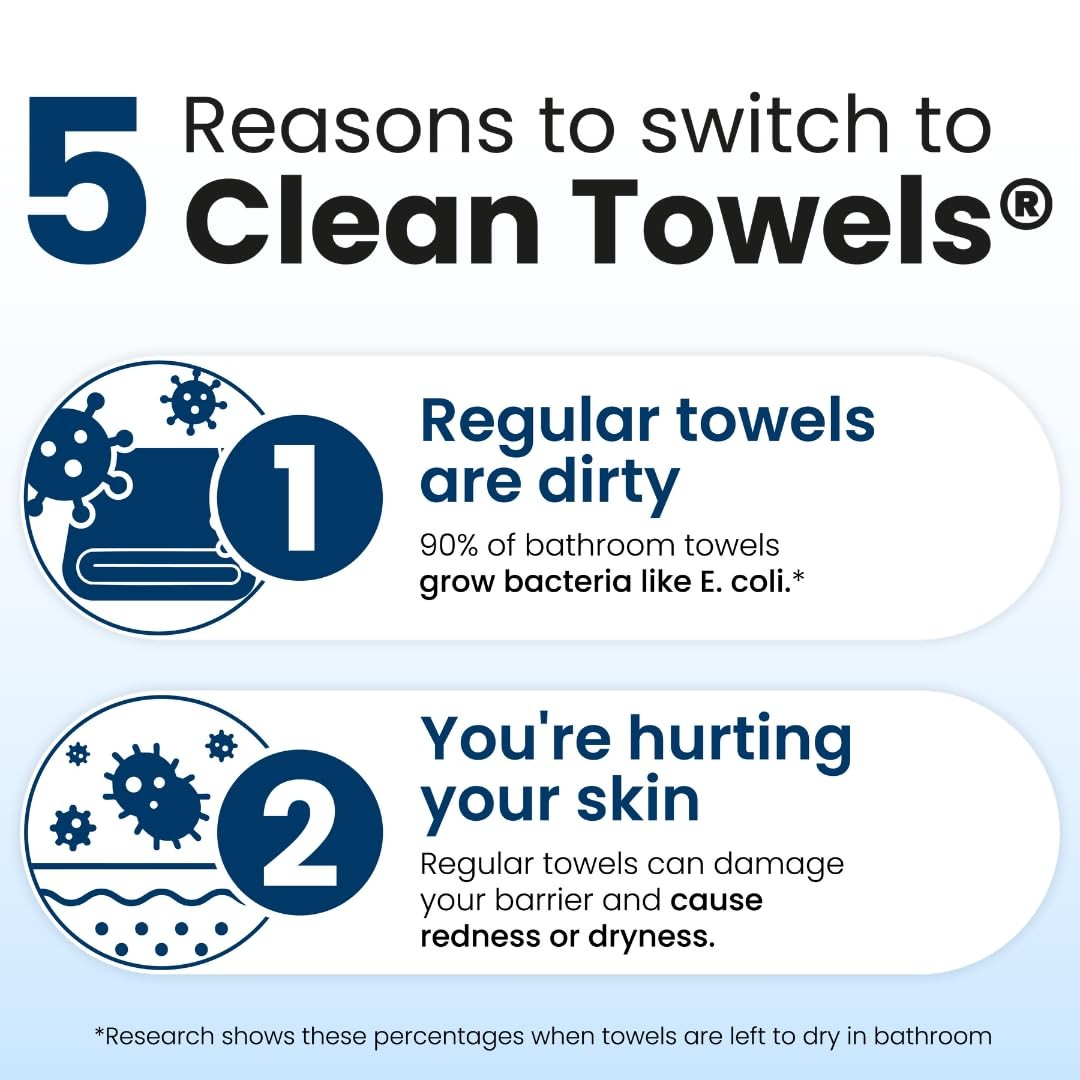 Clean Skin Club Clean Towels XL®, 100% USDA Biobased Face Towel, Disposable Face Towelette, Eczema Association Accepted, Makeup Remover Dry Wipes, Ultra Soft, 1 Pack, 50 Ct