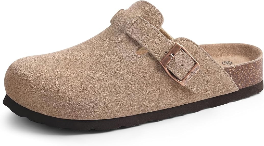 Genuine Suede Clogs for Women Men Soft Cork Footbed Leather Mules Comfort Potato Shoes with Arch Support