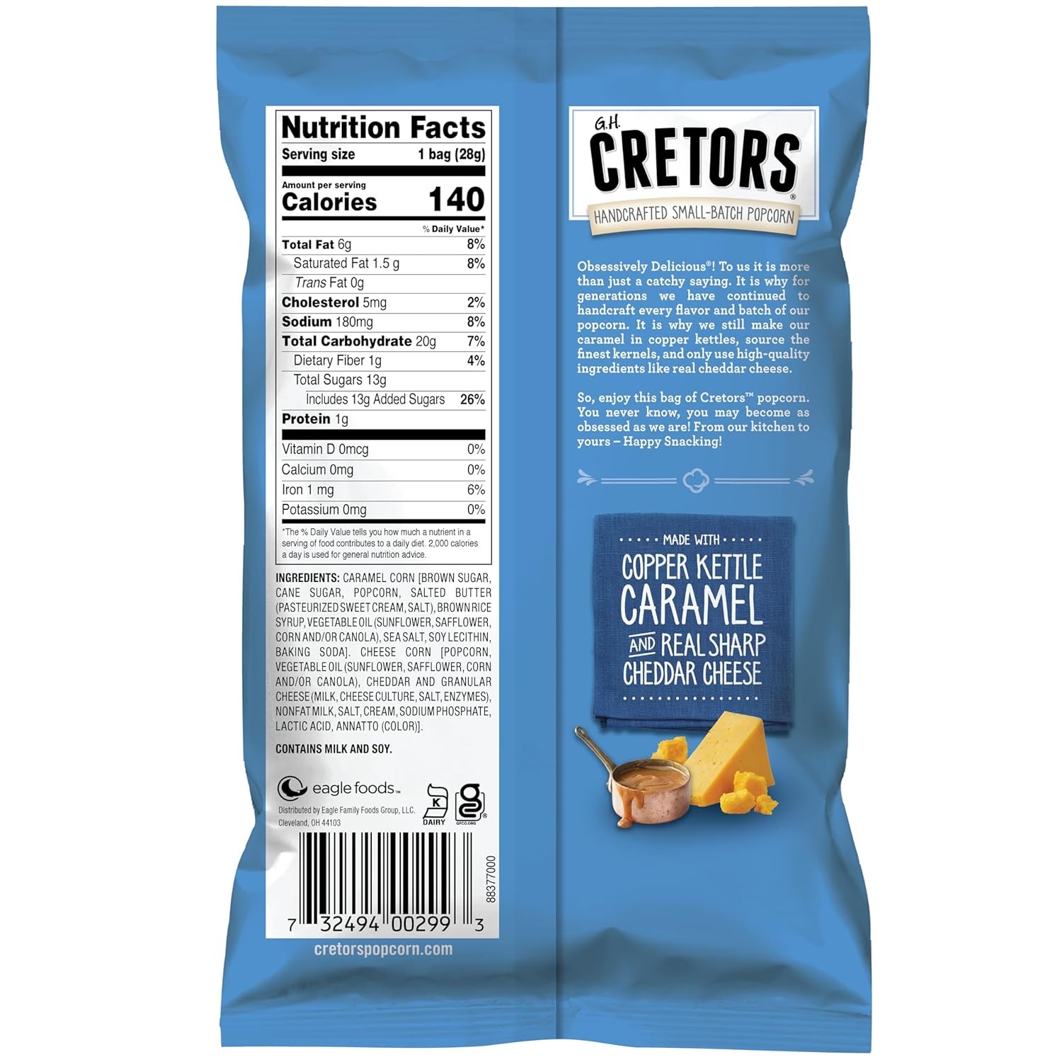 G.H. Cretors Cheese & Caramel Popcorn Mix (1 oz Bags – 40 Pack) Handcrafted Small Batch Popcorn, Gluten Free, Kosher, No Artificial Preservatives, Convenient Individual Bags