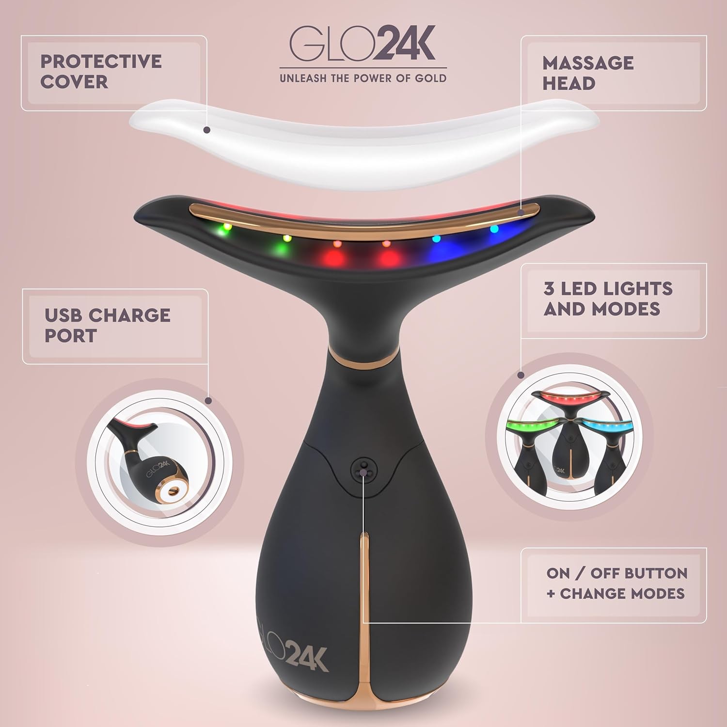 GLO24K Red Light Face & Neck Beauty Device – 3-in-1 Facial Massager Tool with LED & Vibration for Skin Revitalization and Neck Firming