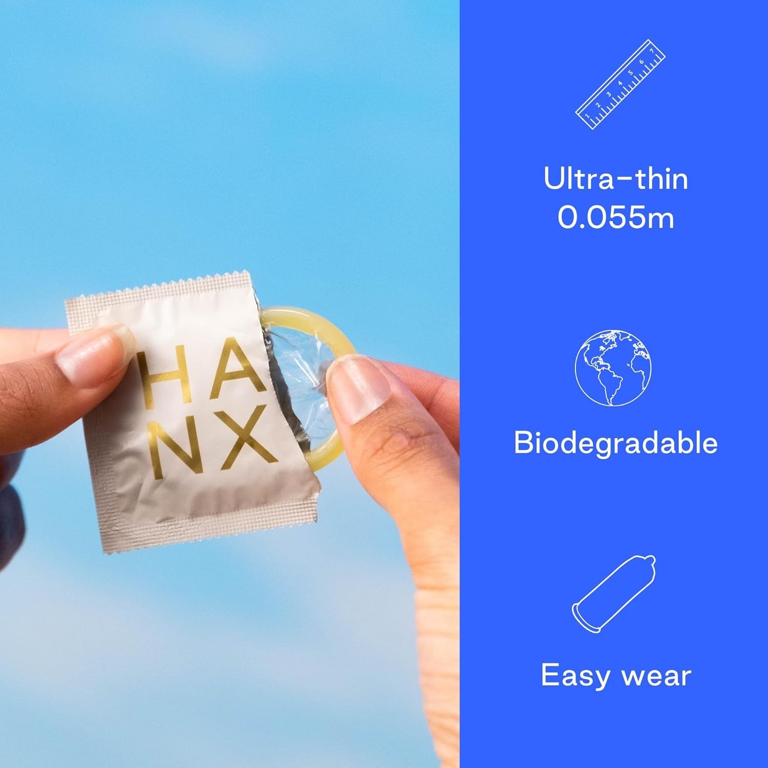 HANX Condoms | Ultra-Thin, Natural Latex with Silicone Lubricant | Paraben & Spermicide-Free | Dermatologically Approved | Strong & Reliable | Safe, Comfortable Protection | Standard (Pack of 30)
