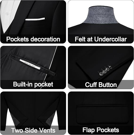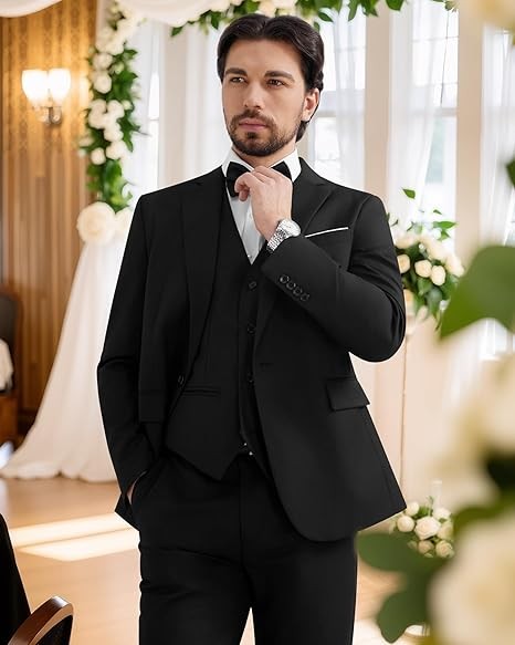 MAGE MALE Men's 3 Pieces Suit Elegant Solid One Button Slim Fit Single Breasted Party Blazer Vest Pants Set