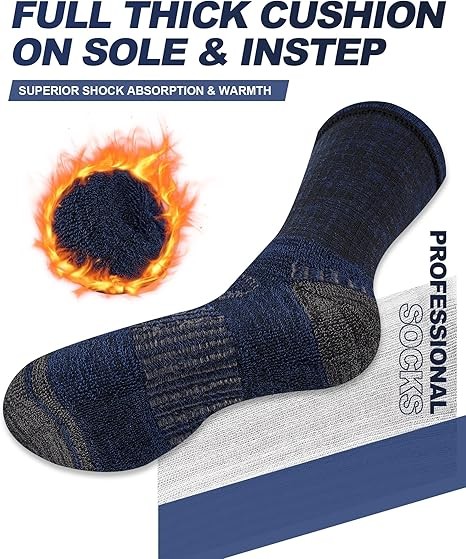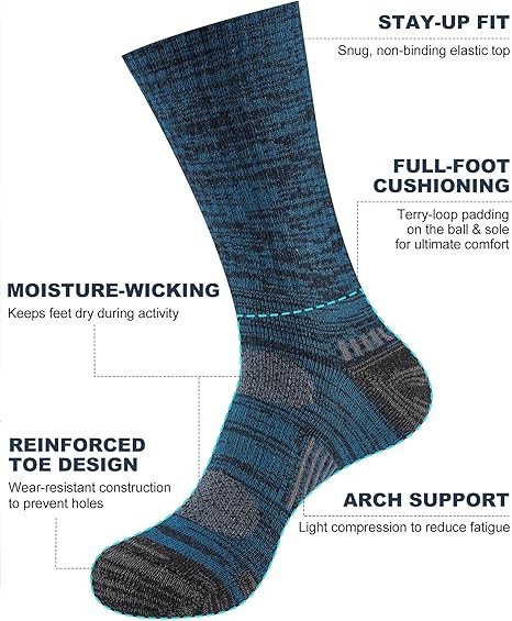 Mens Cotton Boot Crew Socks, 5 Pairs Full Cushion Socks Moisture-Wicking & Reinforced for Work Hiking Walking Outdoor