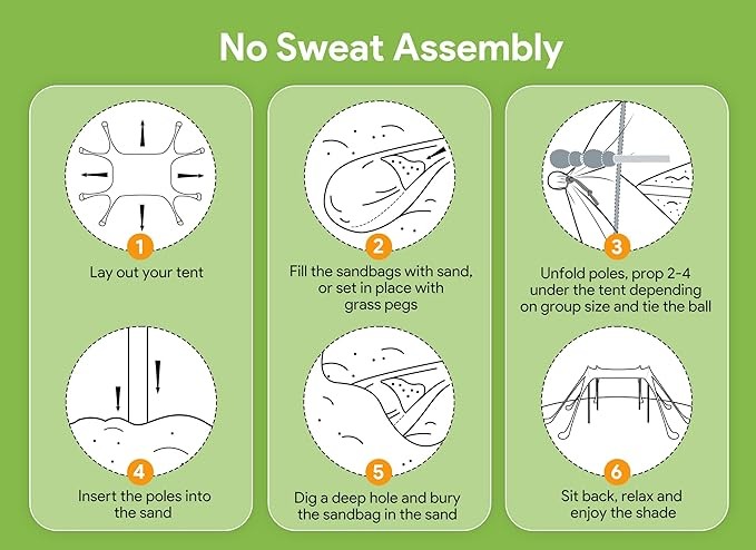 Osoeri Beach Tent, Camping Sun Shelter UPF50+ with 8 Sandbags, Sand Shovels, Ground Pegs & Stability Poles, Outdoor Shade Beach Canopy for Camping Trips, Fishing, Backyard Fun or Picnics