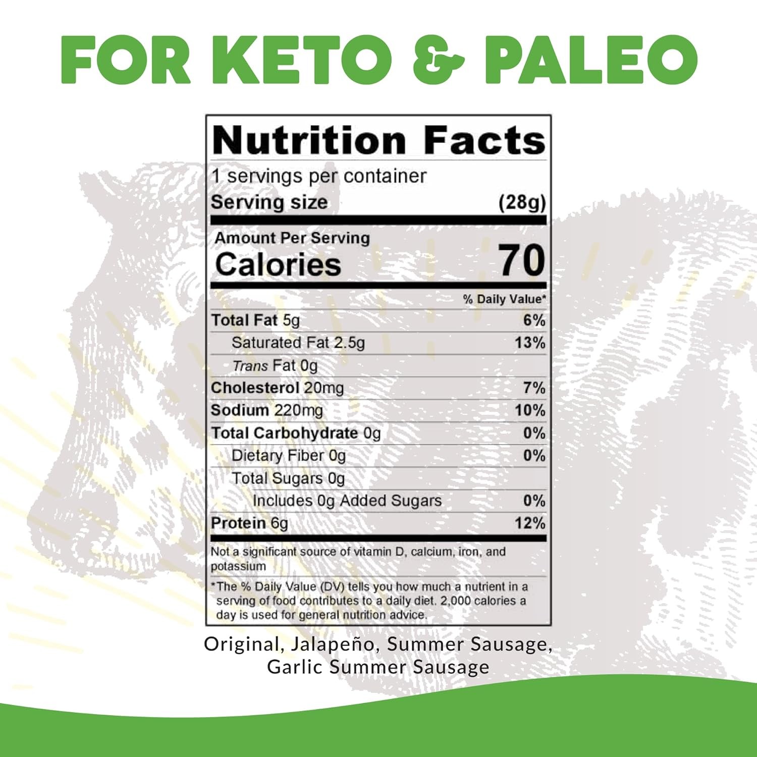 More expensive but grass-fed, Shelf life, travels well, does not require power/refrigeration - got me through storms and power outages. Sometimes cut them in half, thirds, even quartered. Thank you