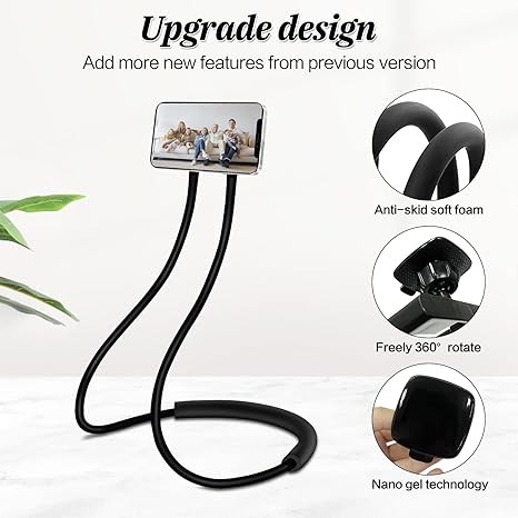 Phone Holder for Bed, Upgraded Neck Phone Holder Lazy Phones Stand 360°Rotation Gooseneck Phone Support Hands Free for All Phones (Black)