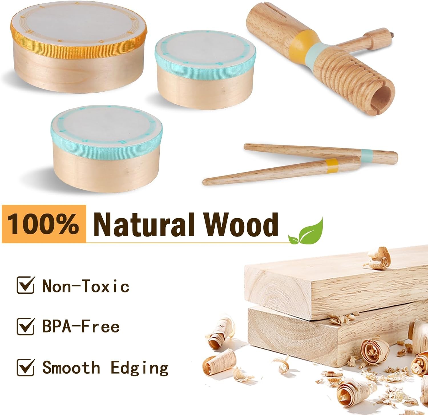 Toddlers Drum Set Toys for Toddlers 1-3,Baby Drum with Xylophone,Musical Instruments Toy, Kids Wooden Montessori Toys Birthday Gift for Boys Girls