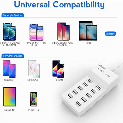 USB Charging Stations 50w10A 10 Ports Multiple Charging Block/Power USB Strip for iPhone Android Smartphone Tablet Smart Watch AirPods Samsung and Multiple Charger Plug…