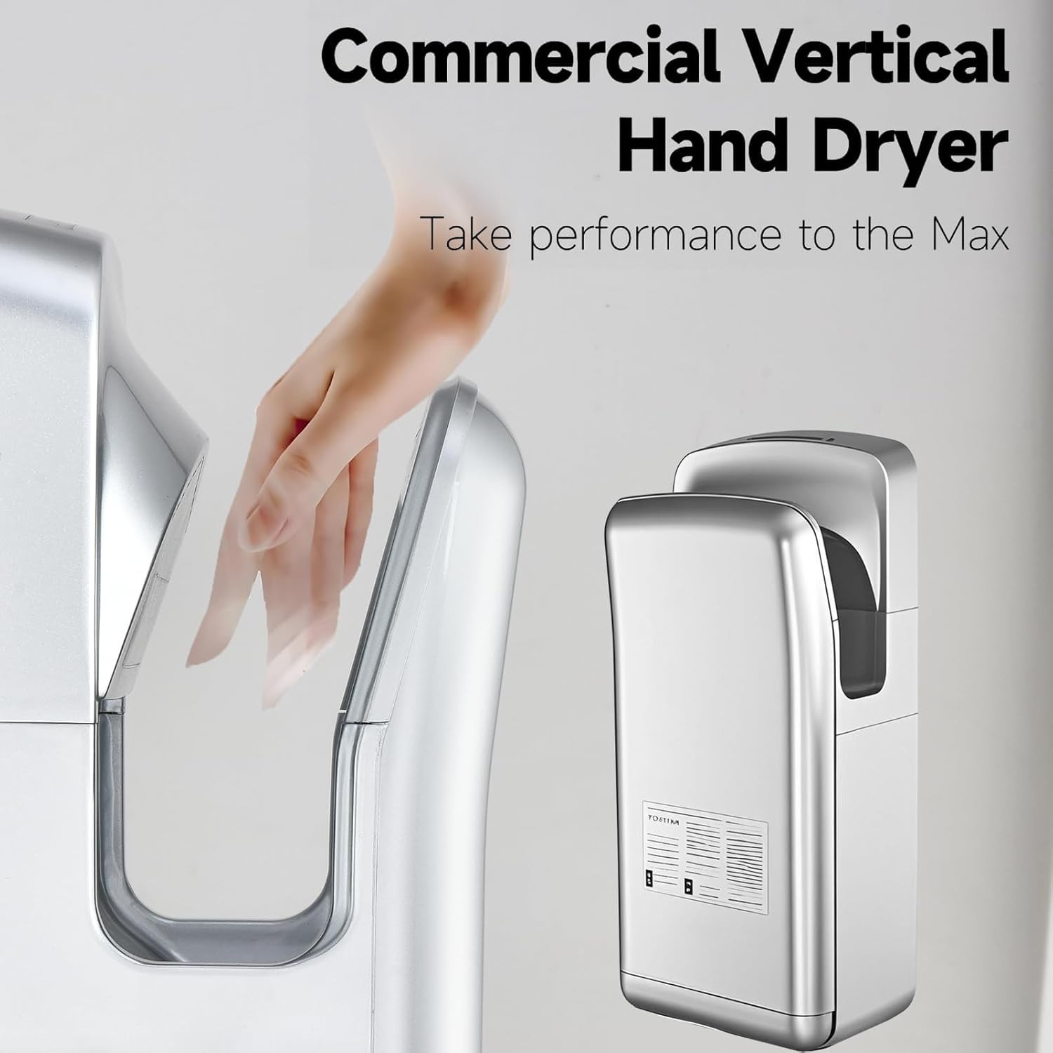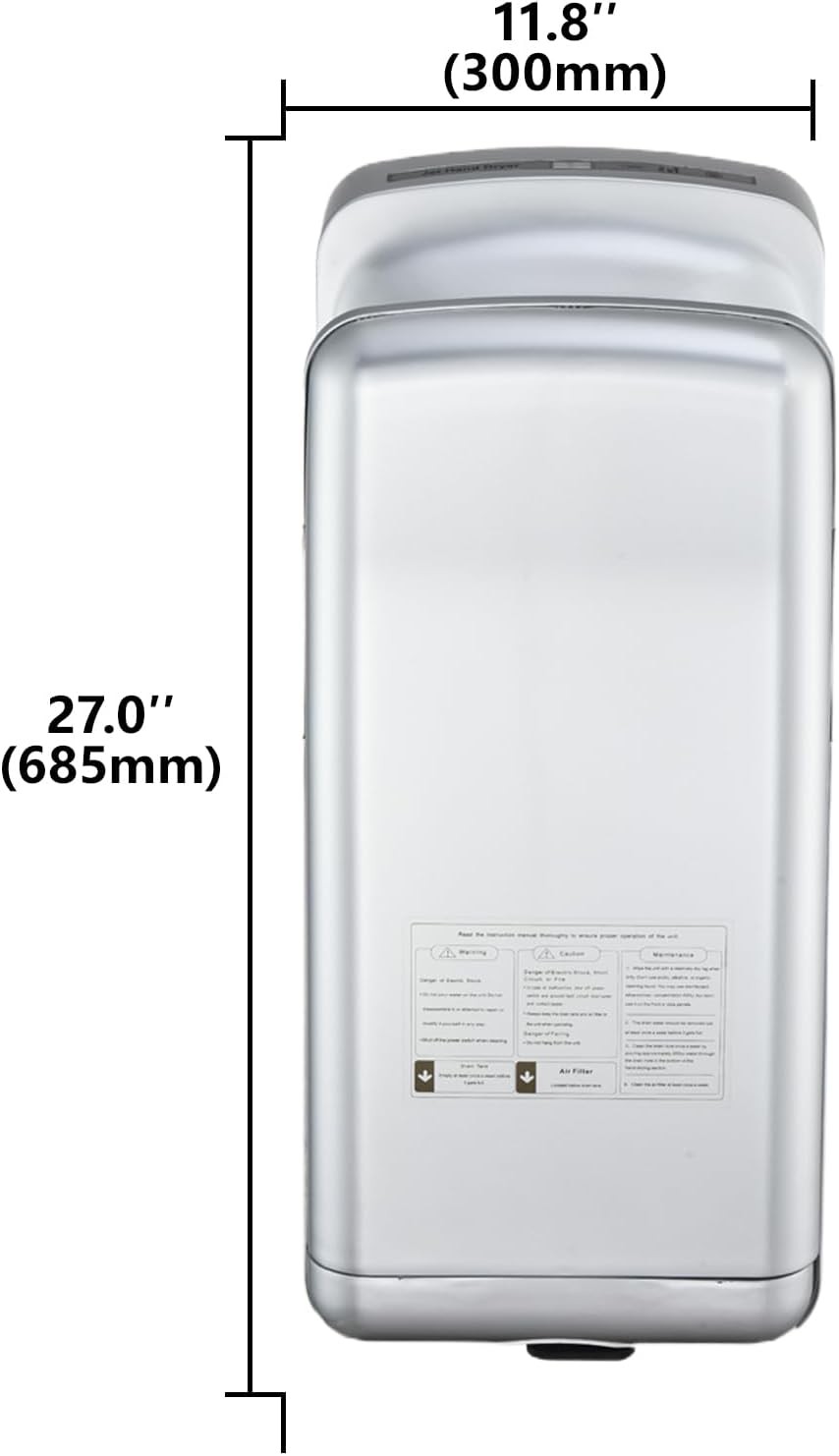 Vertical Premium Commercial Hand Dryer for Bathrooms - High Speed 1850W Jet Air Dryer with Adjustable Air Velocity & HEPA Filter - Electric Hand Dryer for Commercial Use (Silver)