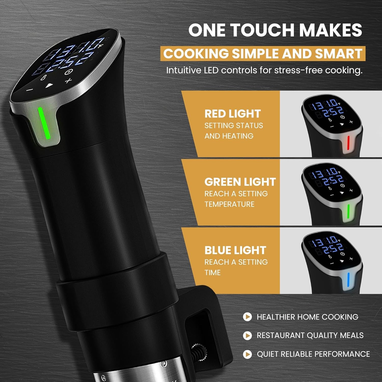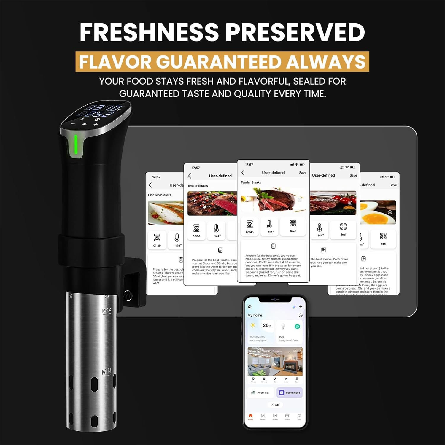 CRUXO 1100W Sous Vide Cooker Kit With App Control, Immersion Circulator, LED Display, Touch Panel, Vacuum Sealer & 10 Sealing Bags | Suvee Sous Vide Machine For Precise Cooking, Smart Thermal Cooker