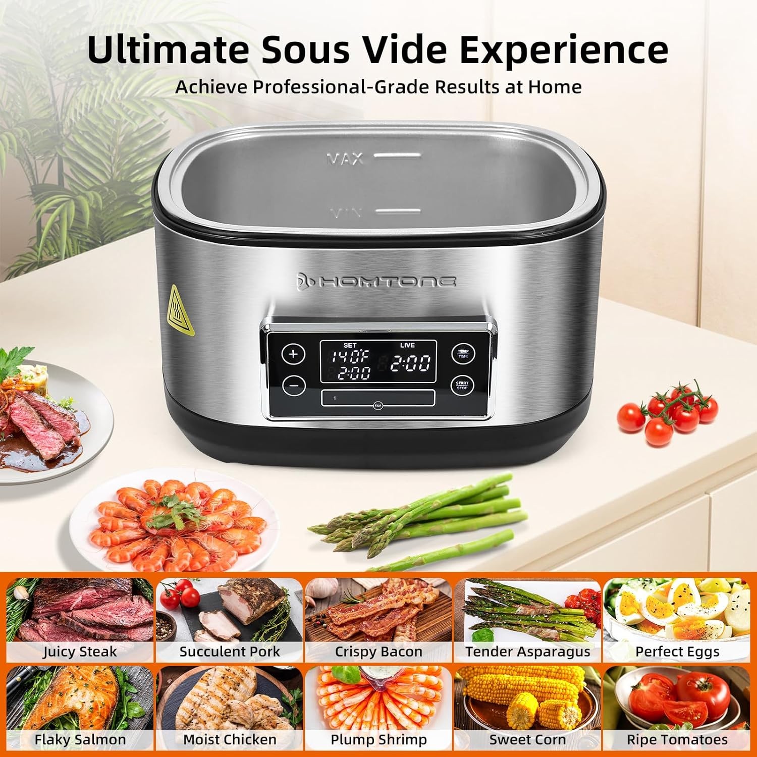 Homtone Sous Vide Cooker, Sous Vide Machine 8 Quart, Sous Vide Precise Cooker Accurate Temperature and Time Control Digital Display,Stainless Steel Suveed Cooking Machine Vacuum Bags + Pump Included
