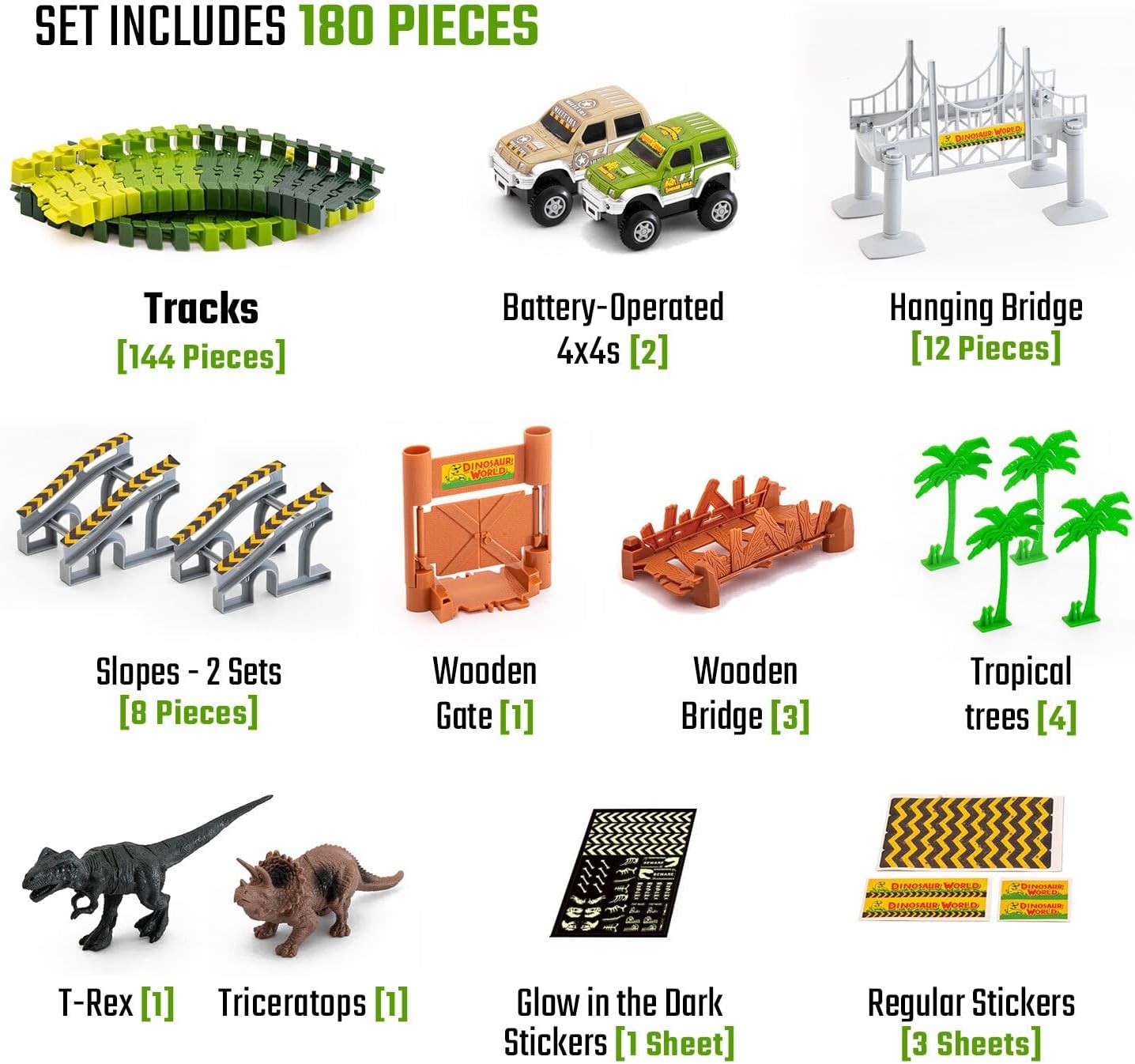 JITTERYGIT Dinosaur Jurassic Race Track Train Glow in The Dark World Toy Set, Kids Dino Racetrack Park Includes T-Rex & Triceratops Playset - Best Birthday Gift for Boys & Girls 3 4 5 6 7 8 Year Old