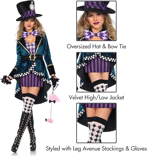 Leg Avenue Women's 5 PC Delightful Mad Hatter Costume Women