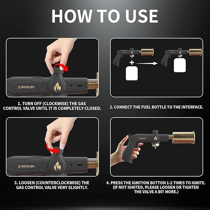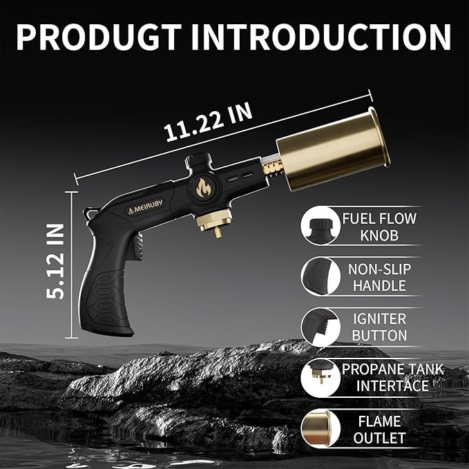 Powerful Propane Torch, Stocking Stuffers Gift for Men Dad, Culinary Blow Kitchen Cooking Torch for Steak Searing, Campfire Charcoal Starter for Blackstone Griddle Accessories (Tank Not included)