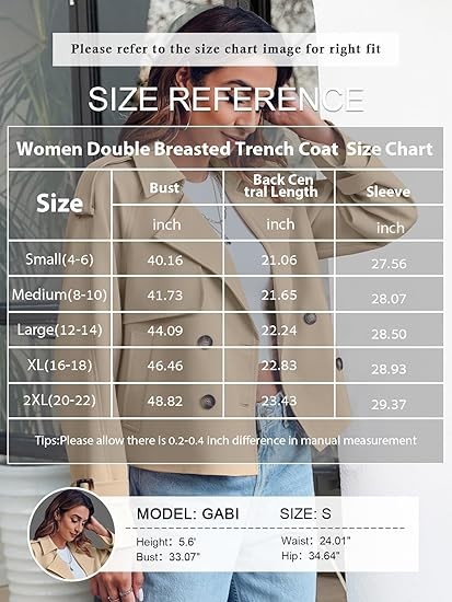Saodimallsu Women Crop Double Breasted Trench Coat Raglan Sleeve Work Office Cropped Jacket With Pockets