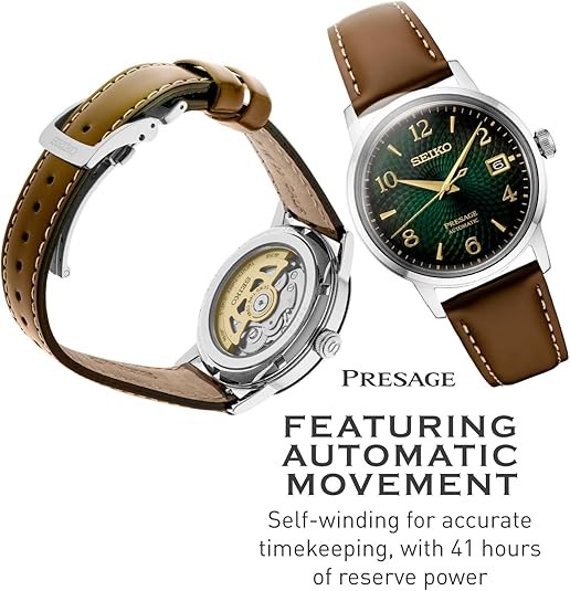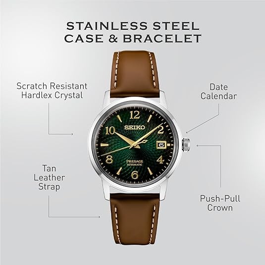 SEIKO Automatic Watch for Men - Presage Cocktail Time - Patterned with Golden Numerals and Date Calendar, 50m Water-Resistant