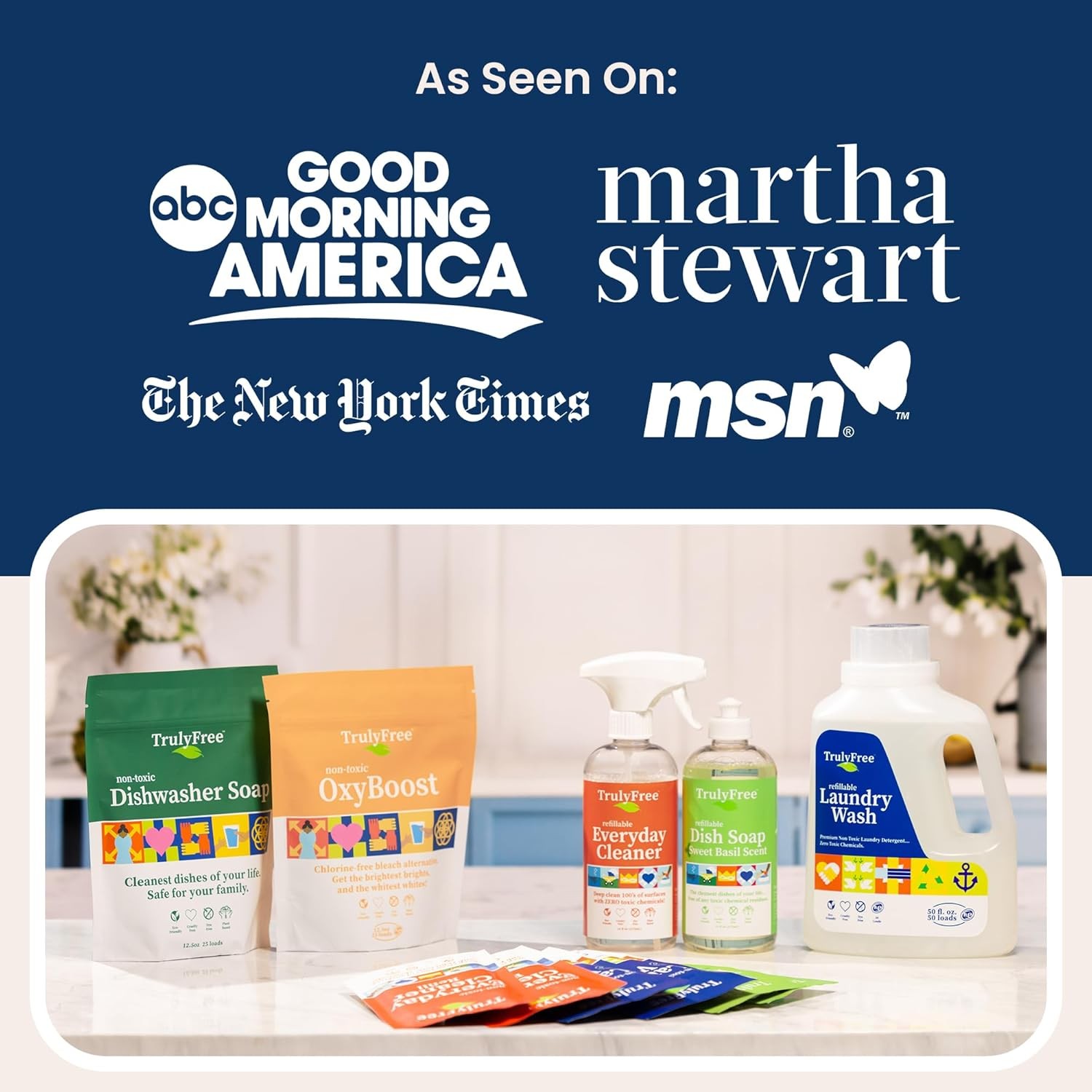 Truly Free Natural Laundry Detergent for Sensitive Skin | Eco Friendly, Plant Based, Baby Clothes Safe | Clean & Easy Powder to Liquid, 1 Pack Detergent + 1 Refillable Jug | Signature Scent, 50 Loads