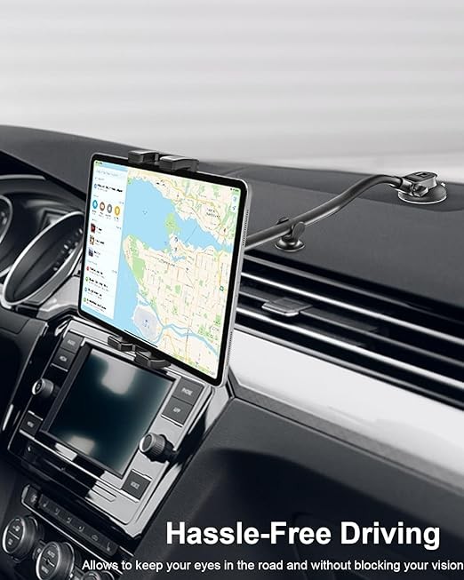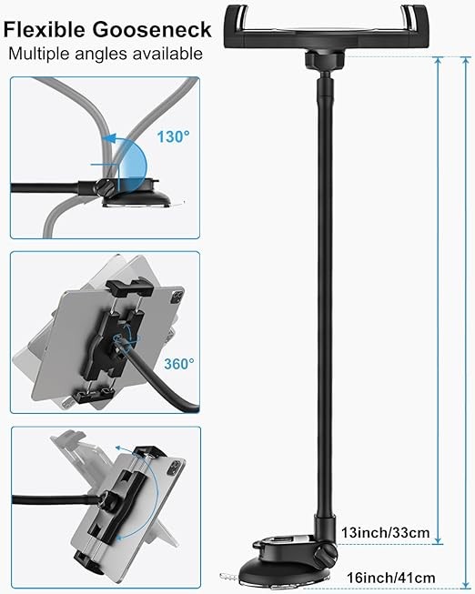 woleyi Tablet Holder for Car Dashboard Windshield [Gooseneck Long Arm] Suction Cup iPad Holder for Car, Car Tablet Mount Compatible with iPad Pro Air Mini, Galaxy Tabs, Cell Phones, 4.7-13" Devices Vi
